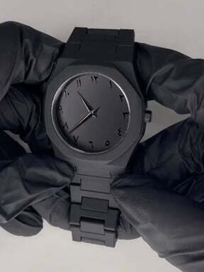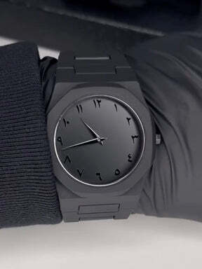 The Arabic Aura Watch is a bold, all-black timepiece with Arabic numerals, lightweight design, and a sleek, modern look—perfect for everyday style.
